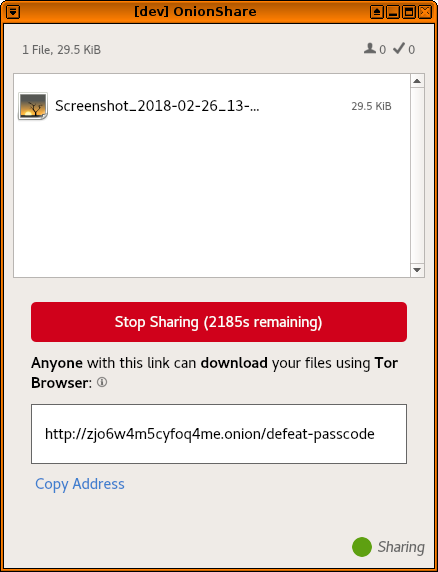 Great work Micah! OnionShare is really to go to for me now when it comes to sharing files.