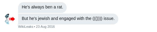 Shortly after that tweet, in a private Twitter DM group, WikiLeaks called Jewish investigative journalist Raphael Satter a "rat," after he tweeted an article he wrote for the Associated Press about the harm caused when WikiLeaks publishes private information about individuals. (A member of this Twitter DM group leaked the incredibly revealing messages to me, and I reported on them for The Intercept. You can also see my Twitter thread about these leaked DMs here.)