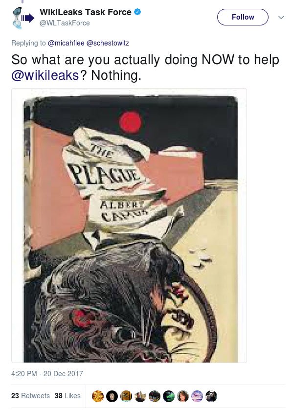 Someone pointed out a few WikiLeaks conspiracy theory tweets that I didn't know about.