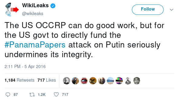 Keep in mind that the documents were real, and the Putin-linked corruption that was revealed actually happened. After WikiLeaks tweeted in Putin's defense, Putin himself cited WikiLeaks in order to dismiss the scandal: