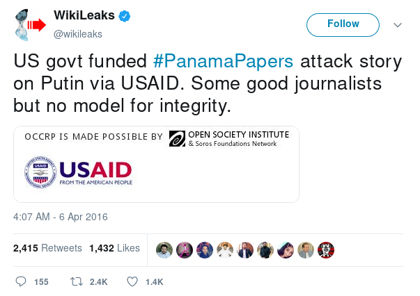 It is false and defamatory to suggest that Julian Assange called the Panama Papers “a Soros-funded attack against Putin” [see https://twitter.com/wikileaks/status/717810984673484800].