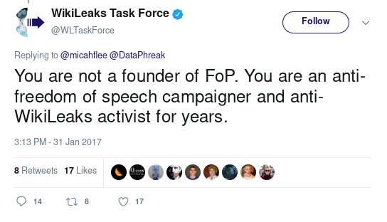 However, during a Twitter fight I was involved in, an official WikiLeaks account did make the claim that I'm not a co-founder of FPF.