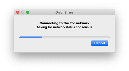 Here's what OnionShare 2 looks like. When you first open it, it connects to the Tor network.