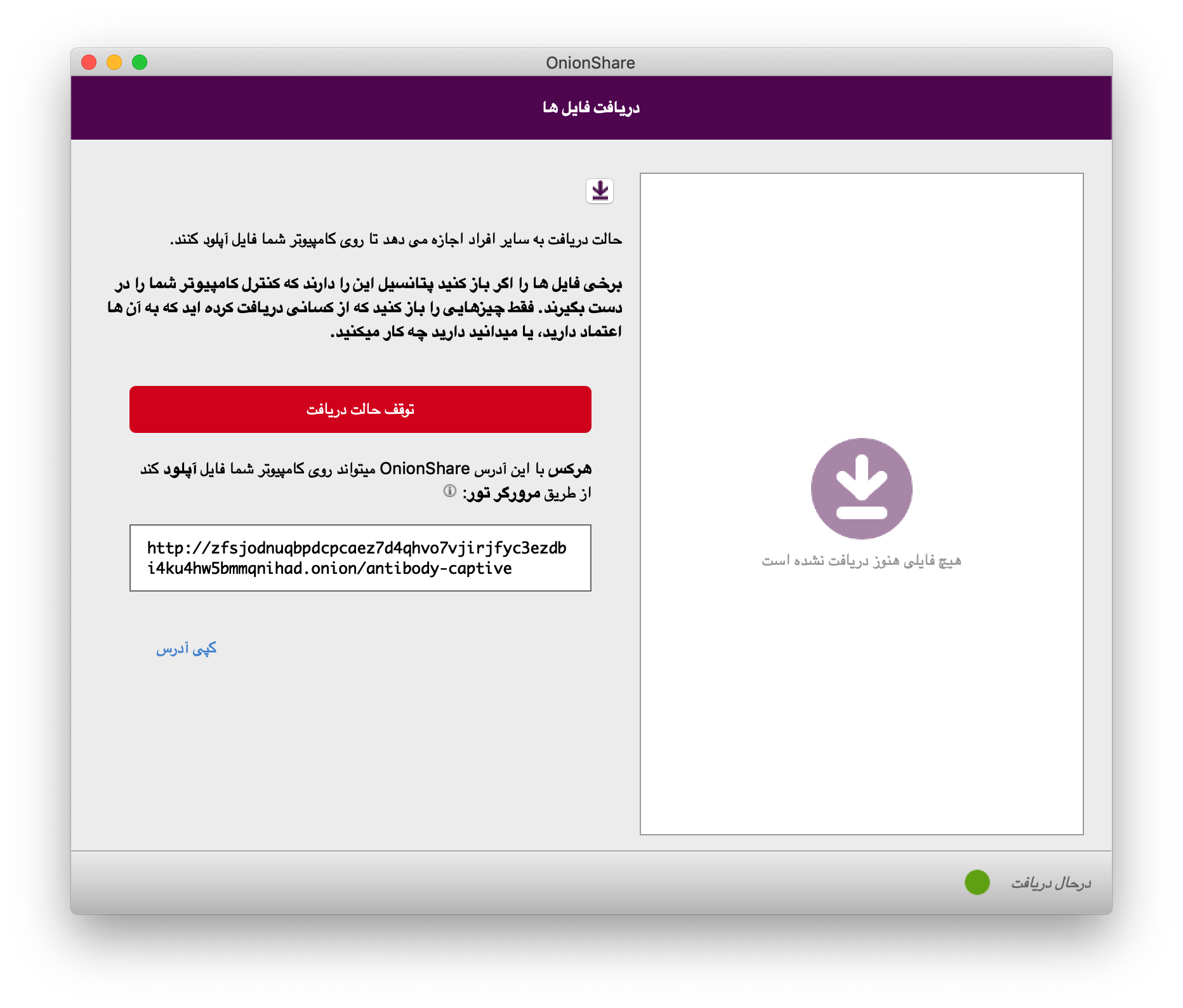 When you use OnionShare to receive files, you turn your computer into an anonymous dropbox -- I like to think of it is a super lightweight version of SecureDrop that anyone can run on their own laptop, for free, without needing to set up any infrastructure or do any systems administration. (However, it's not as robust, or secure, as SecureDrop, which enforces isolated environments in a way that OnionShare can't.)