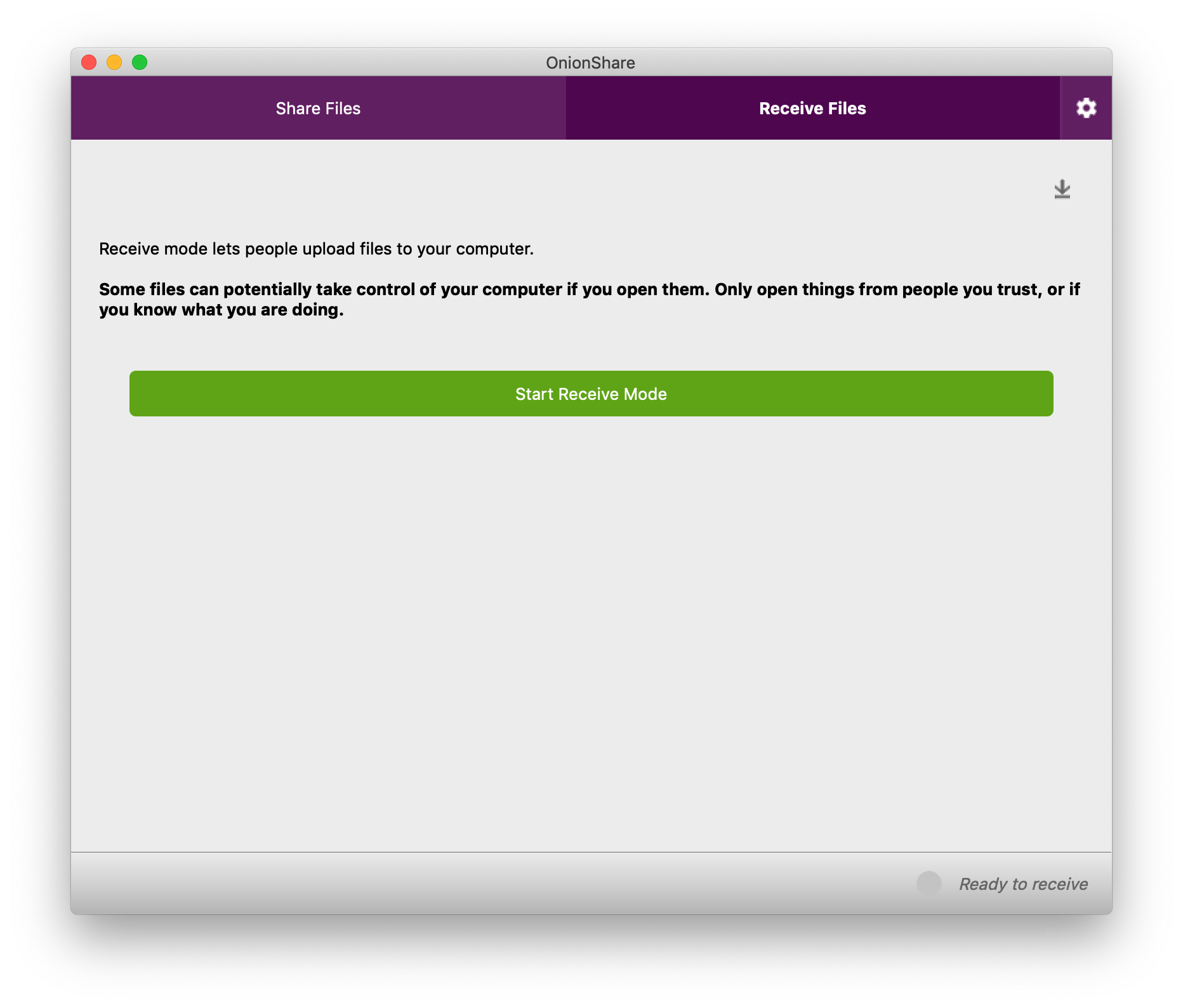 Now that you know how the "Receive Files" tab works, be very careful with it, and make sure to take the prominent warning to heart: