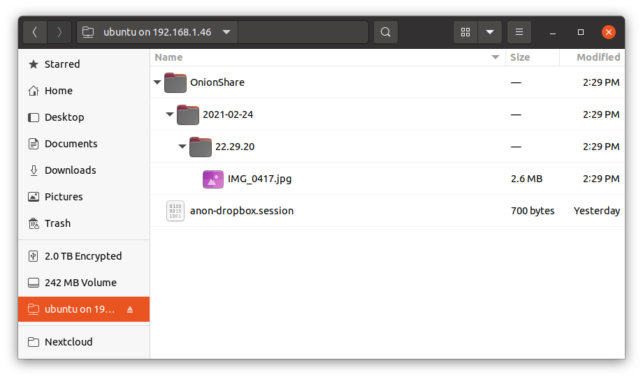 You should see your OnionShare anonymous dropbox again.